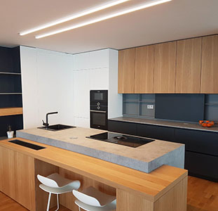 Izdelujemo notranjo opremo po naročilu kot so kuhinje, dnevne sobe, spalnice, otroške sobe, predsobe, kopalnice, stopnice, vrata... Izdelujemo tudi pisarniško pohištvo, opremljamo lokale in trgovine ter izdelujemo namensko unikatno pohištvo. Po želji vam uredimo tudi kompletno adaptacijo stanovanja ali lokala, saj sodelujemo z večjimi arhitekti s katerimi prilagodimo vse oblike in vaše želje, po želji pa načrte izdelamo tudi sami.